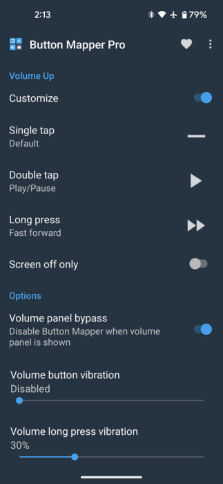 Particularly helpful is the option to give haptic feedback, with a vibration when the button is long-pressed.