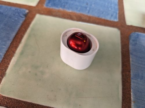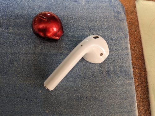 SQRmini-x20 next to an Apple Airpod, 2 grams vs 3.5 grams