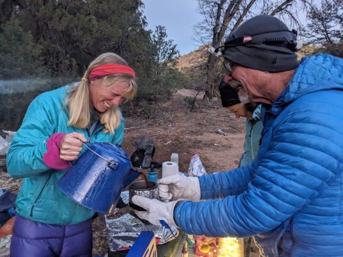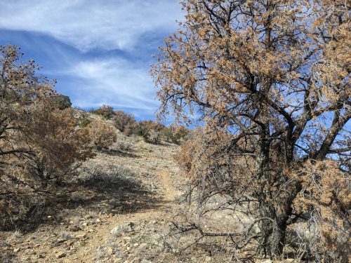 Gila Back Country Horsemen and NMVFO volunteers backpacked in to the Saddle Rock area near Silver City to work on trails for several days, mostly lopping.