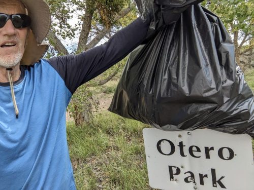 Save Our Bosque Task Force held their monthly second- Saturday- of – the- month cleanup, at Otero Park. The turnout tends to be highly variable, and this month the crowd was teeny-tiny, though the weather was perfect. Otero Park is along the Socorro Resupply Route of the Grand Enchantment Trail, and I have fond memories.